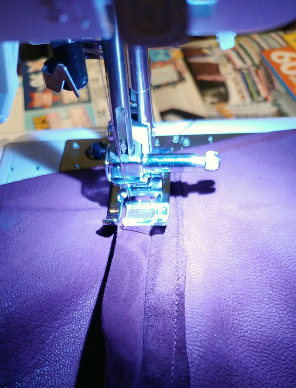 wouldn’t be able to stitch through four layers of suede, so I had to be strategic